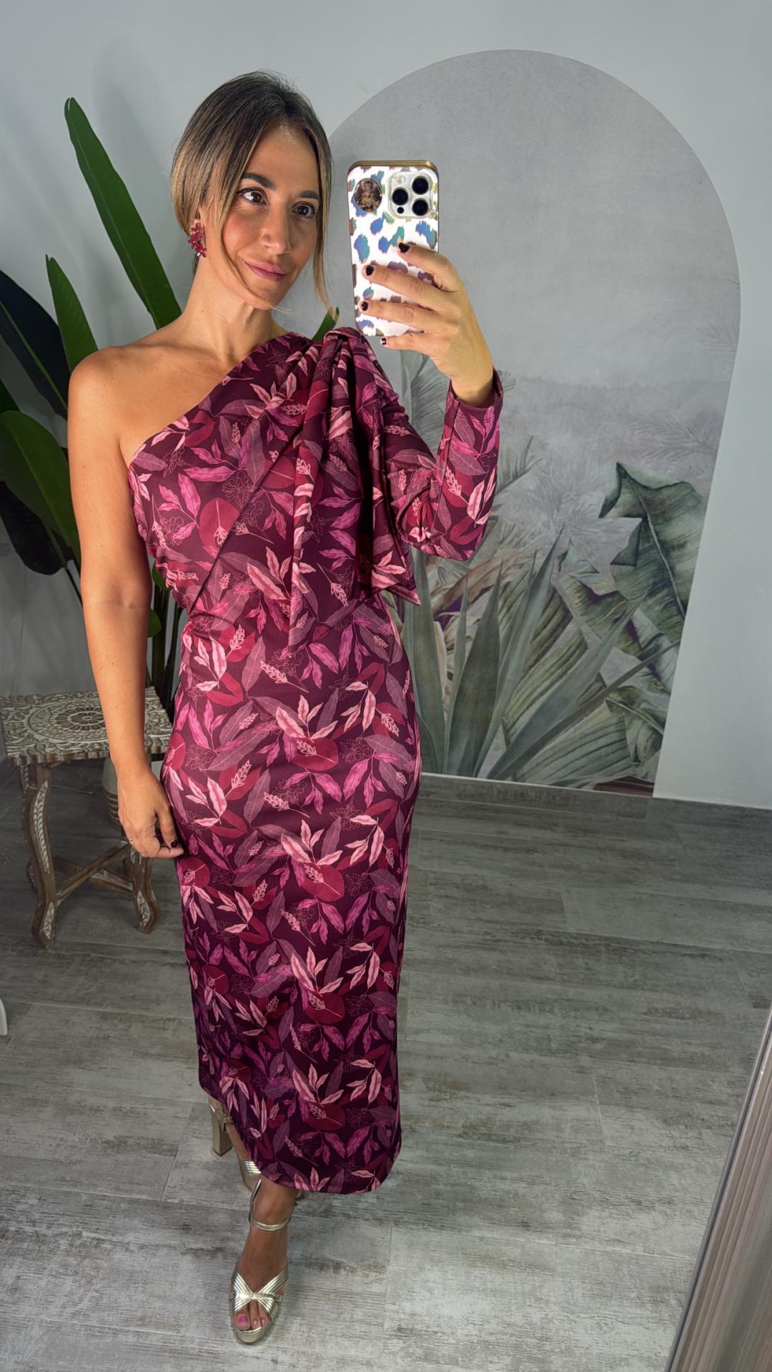 vestido estampado asímetrico, lazo en el hombro , talla única hasta la