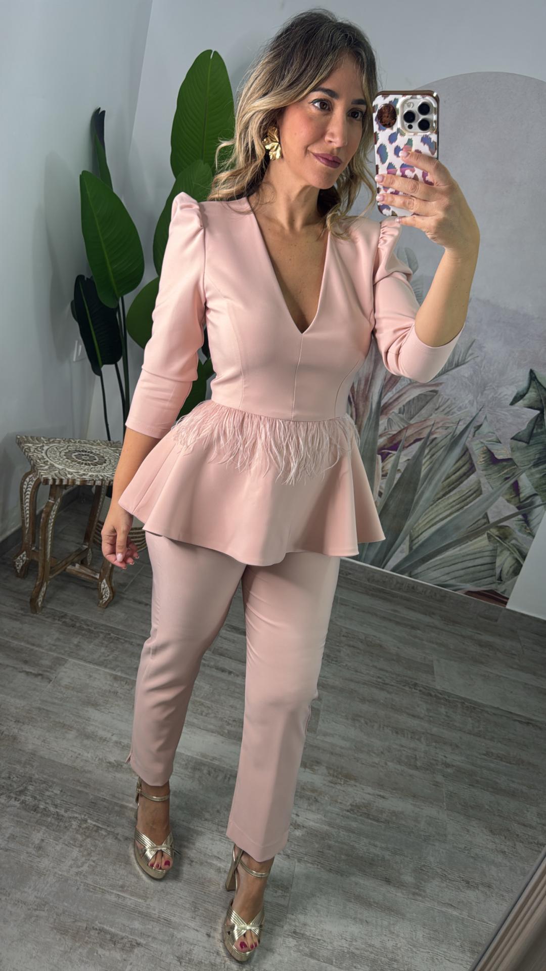 Traje de dos piezas: top con peplum + pantalón