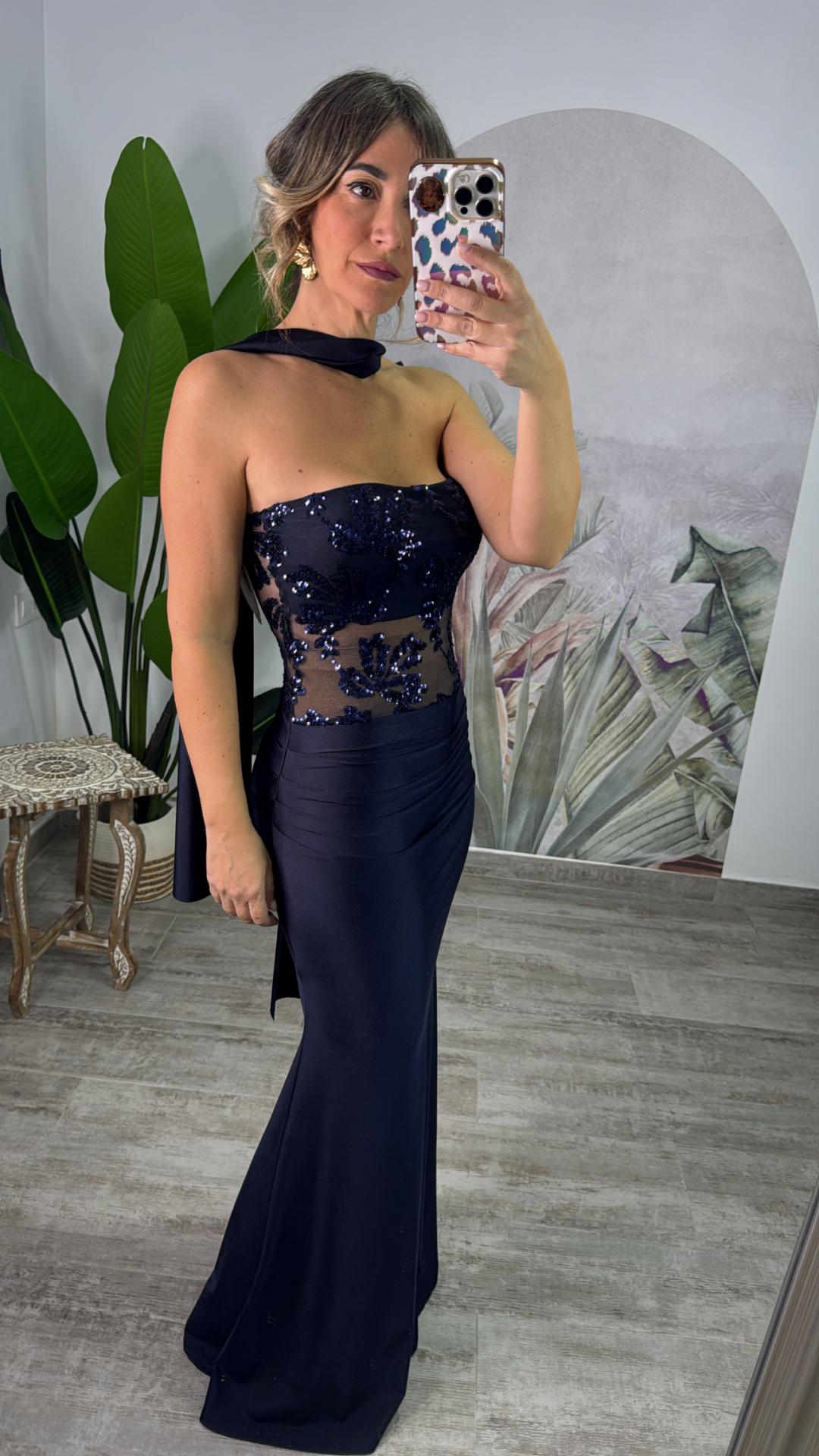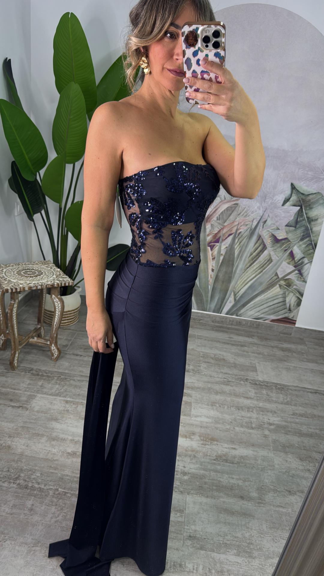 Vestido confeccionado en licra y trasparecia con pallets